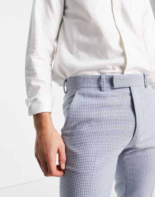 Asos Design Wedding Super Skinny Wool Mix Smart Pants With Pastel Blue Houndstooth Check Asos